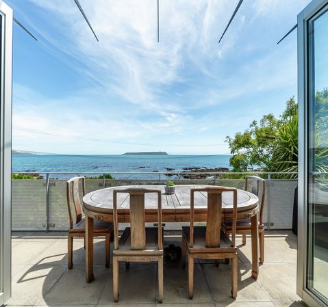 The breathtaking sea views and Mana Island are on full display from every room, framed by a coastal-inspired decor of oceanic blues, greens, and golden tones with open plan modern kitchen with granite top and cosy feature fire, underfloor heating and heatpump for winter warmth. Natural light streams through expansive double-glazed windows, drawing you toward the full-width balconies - perfect for unwinding, alfresco dining, or entertaining.